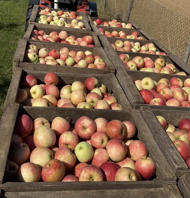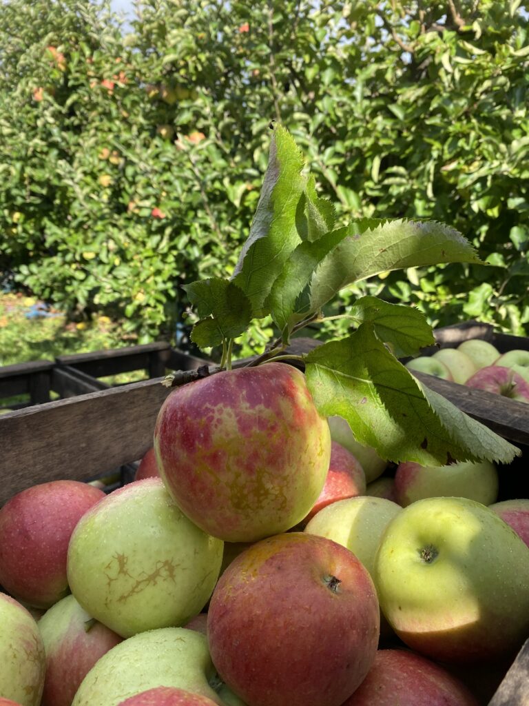 Nous travaillons en agriculture raisonnée, une démarche qui vise à produire des fruits de qualité tout en limitant notre impact sur l’environnement. Cela signifie des interventions réfléchies, chaque variété est suivie avec attention afin de garantir des pommes de qualité.